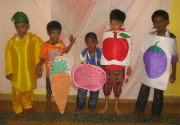 Fruits and vegetables, Aladdin and his Genie, Rama with Sita taken away by Ravana, Krishna and his friend, Ganesha and his brother (Murugan), the pied piper - All these characters visited our Center on Children's day this year.