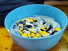 The simple concept that,when oil paint is added to water and mixed well,it does not dissolve in water. Instead it form a beautiful layer of mosaic patterns on top of the water. The children explored this interesting concept. The teacher first explained and gave a demo.Then children were called class wise and did the experiment one by one. They poured water into the bowl, after which the teacher put a few drops of oil paints. Using a stick the children mixed this and then dipped a bottle into it. Once they took out the bottle from the mixture the bottle was beautifully decorated with the Mosaic pattern.