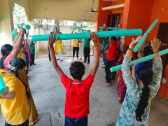 To boost up the energy and to pick up a sportive spirit,an energetic warm up was done by all the children using the pool noodles.Then the rules of the game was explained and a demo was given to the children by the teachers.